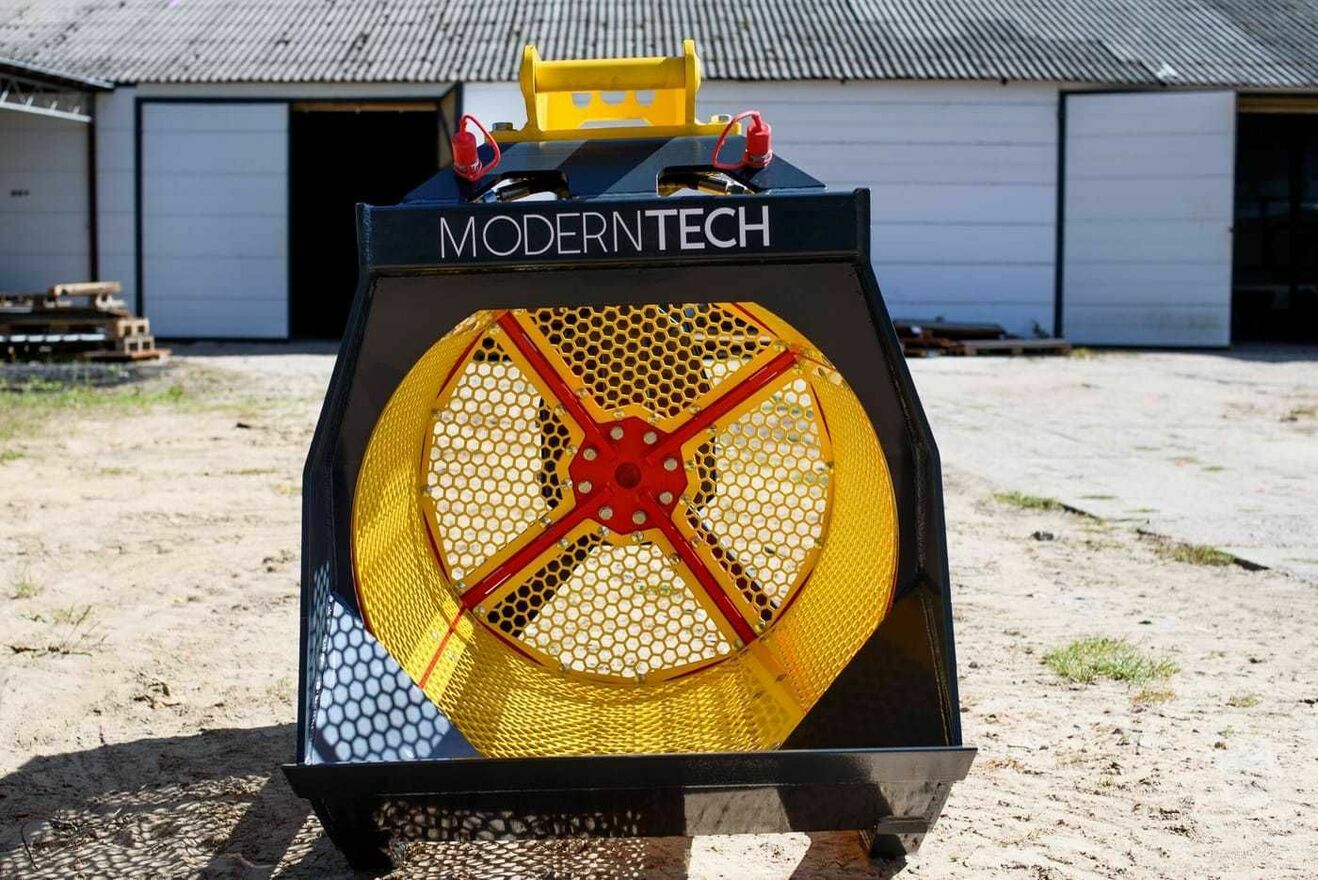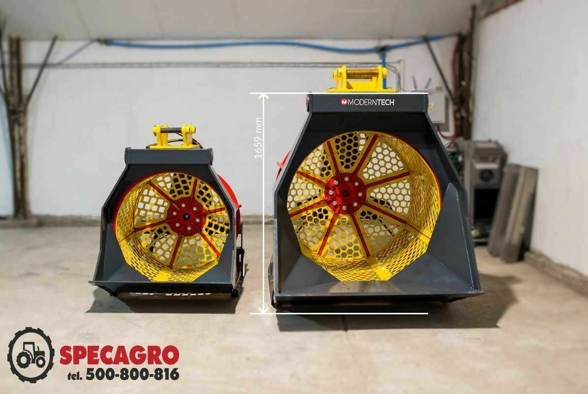 Kosz łyżki zbudowany jest z wymiennych paneli modułowych, które pozwalają na szybką zmianę wielkości przesiewu.